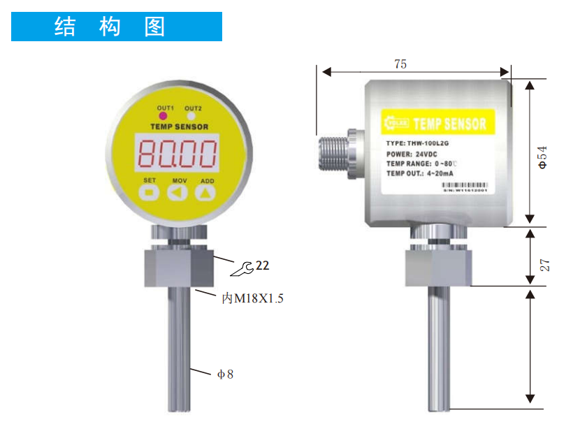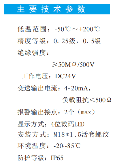 ●表头显示温度,将温度信号转成4~20mA标准信号实现远;