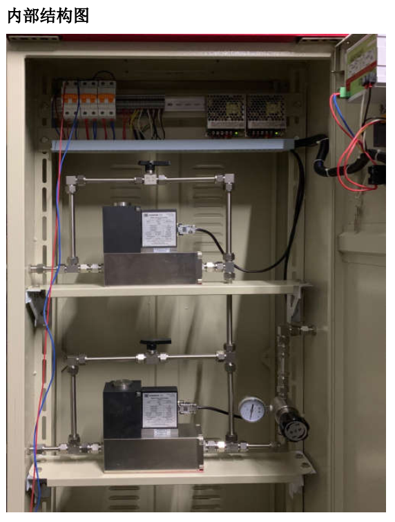 气体控制柜、电源模块、气体过滤装置、信号采集传输单元调压阀、切断阀、旁路调节控制阀、质量流量控制器、压力检测仪表、现场操作控制箱(含触摸显示屏、控制按钮及指示灯)、吹氩管引进装置、快换接头等