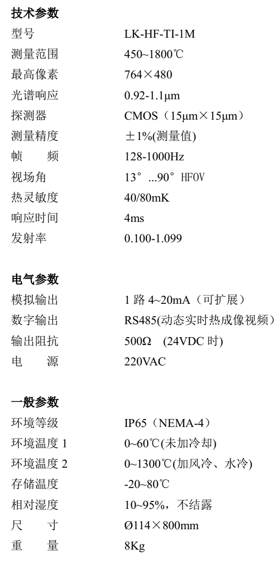红外热像仪主机(含5m专用电缆)、控制箱、热成像处理器、智能热成像分析软件、自动退出装置、专用风冷/水冷保护套等安装附件